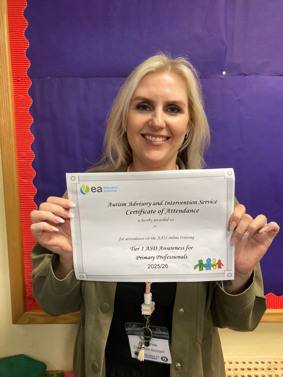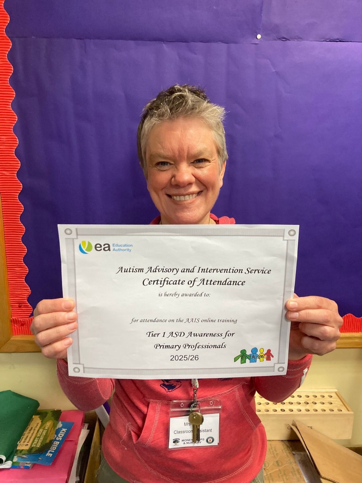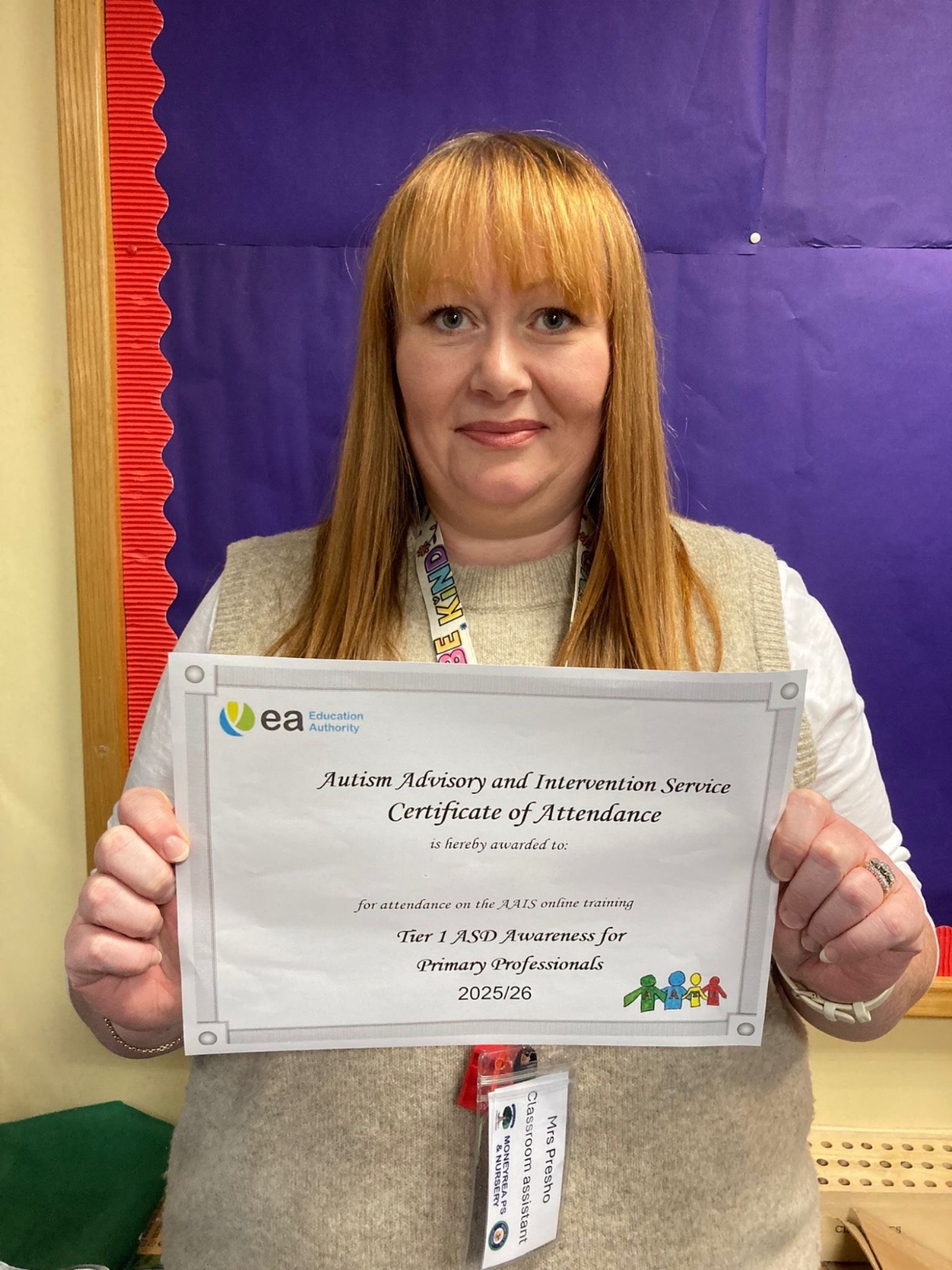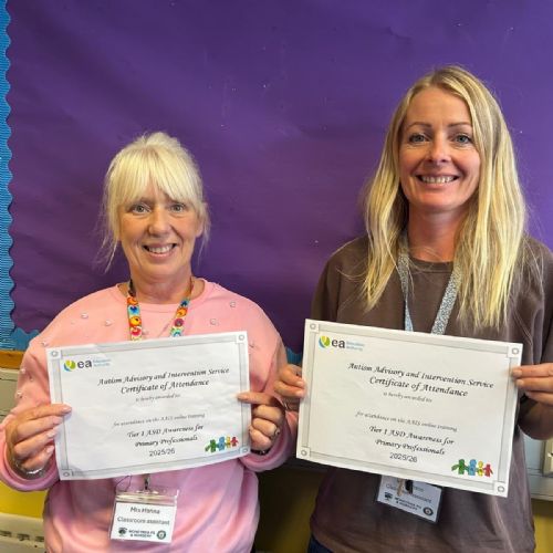 Congratulations to our amazing classroom assistants who completed their Tier 1 ASD Awareness training on our recent school development day. This very practical training module was provided by the Autism Advisory and Intervention Service (AAIS).