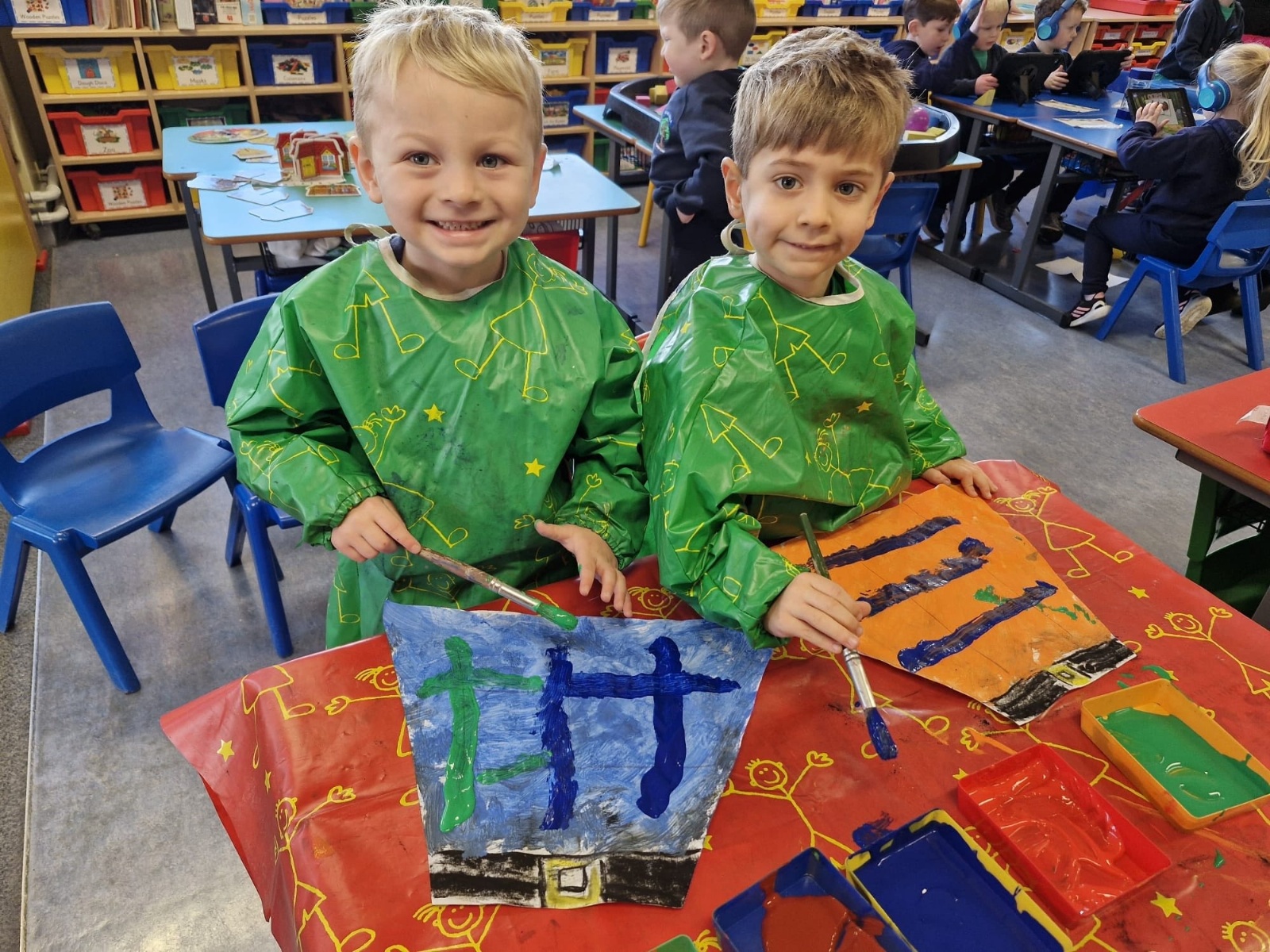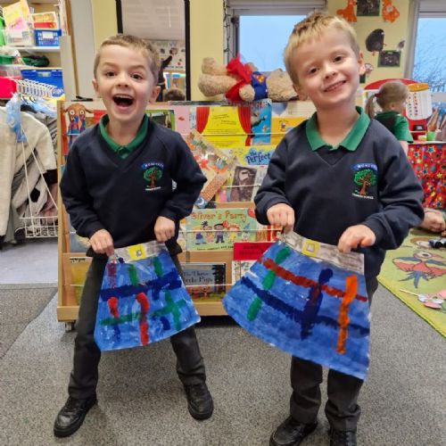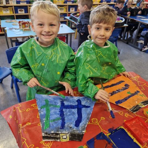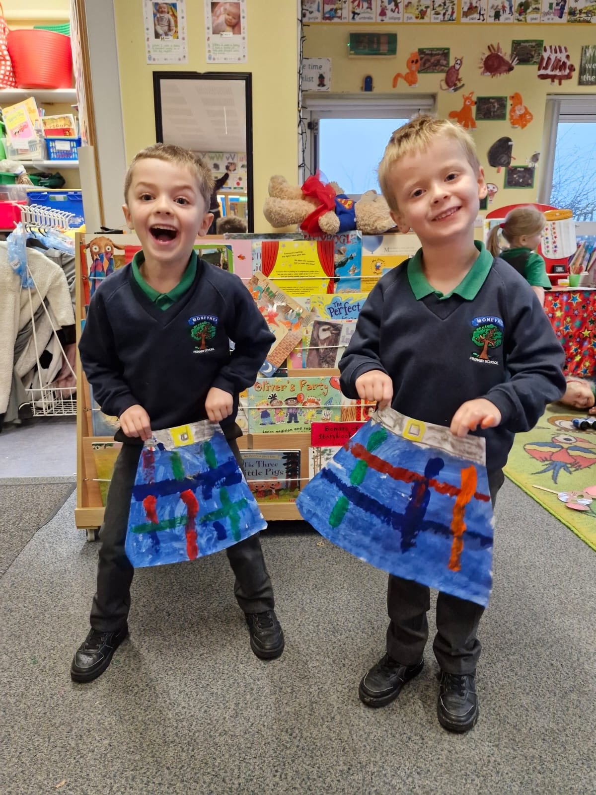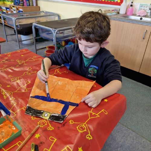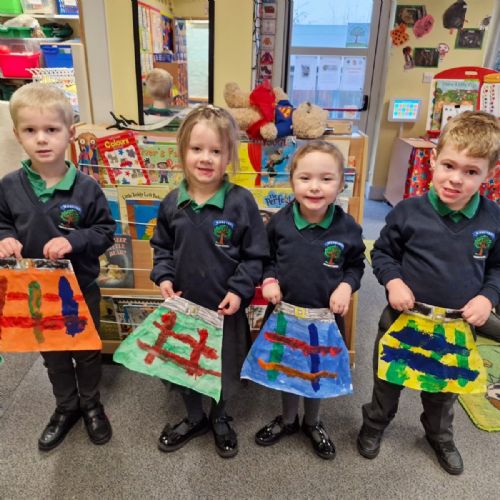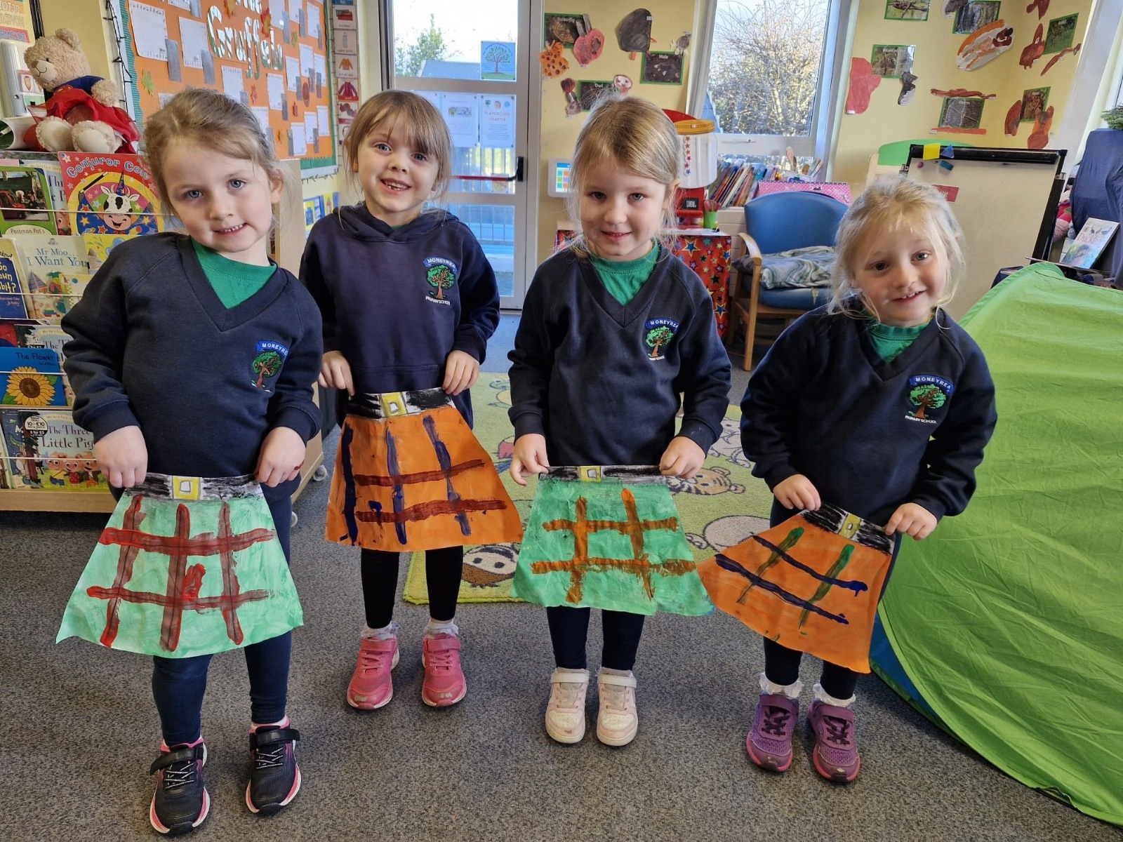 Our Yr1 class designed and painted their very own tartan kilts. It's not easy painting straight lines when you're just 4.