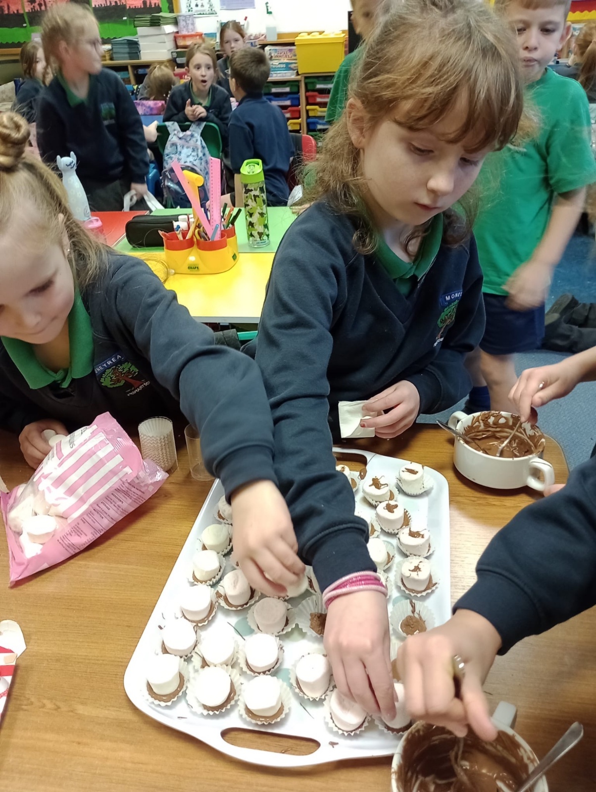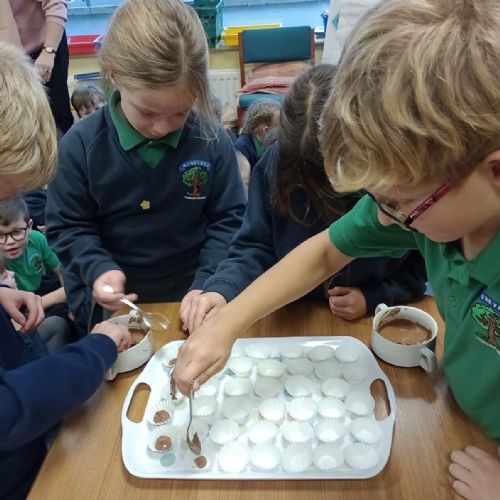 We made Top Hats before writing out the recipe in our books. The perks of learning about "Chocolate" as our topic this term!