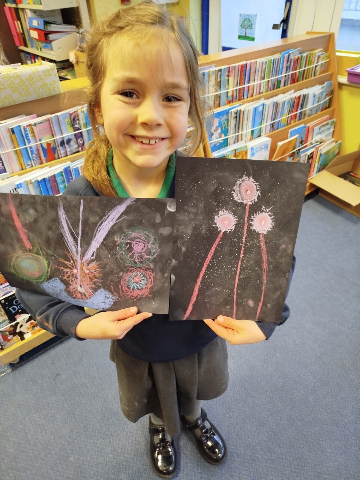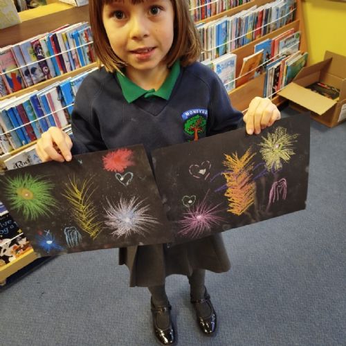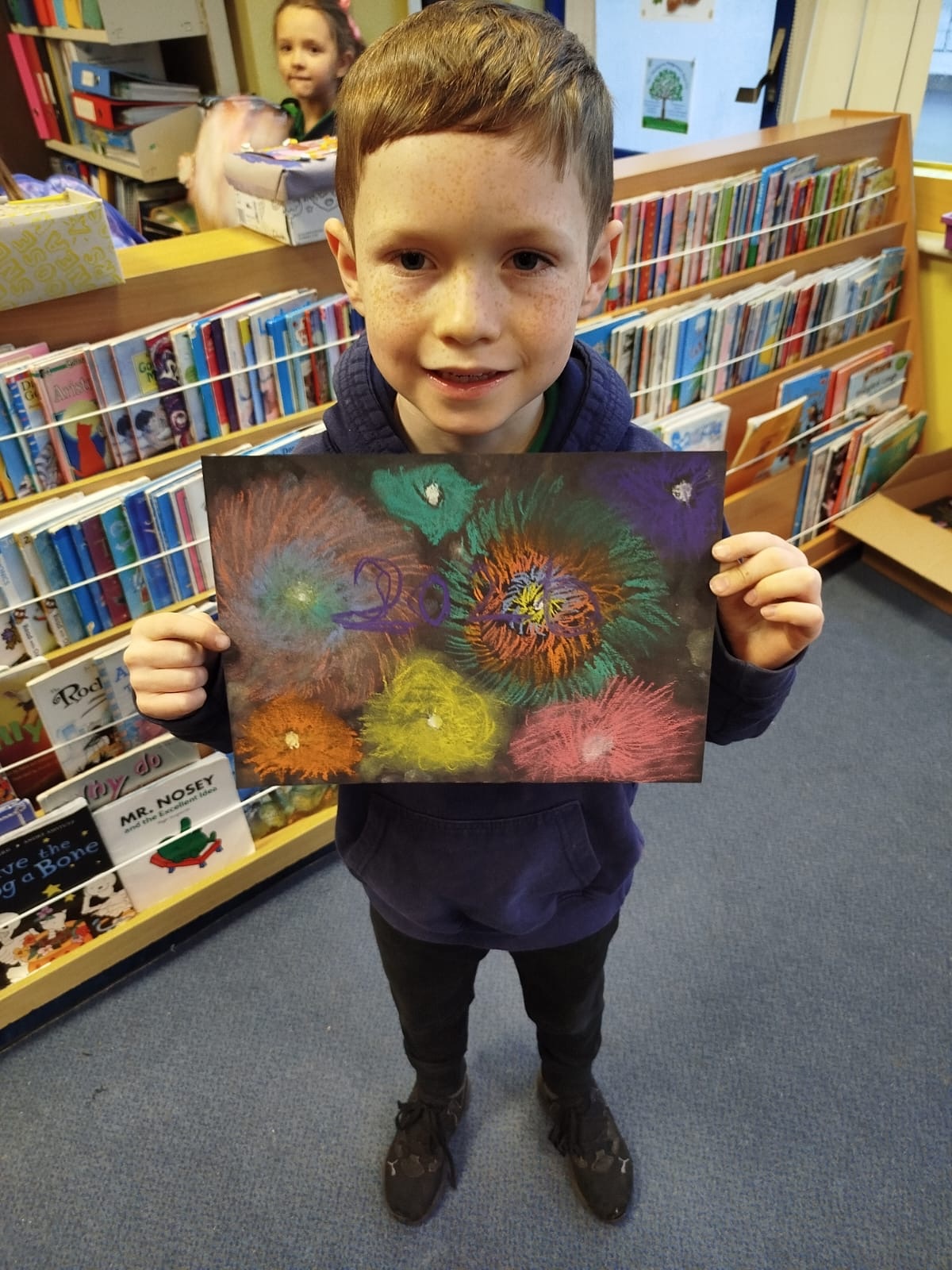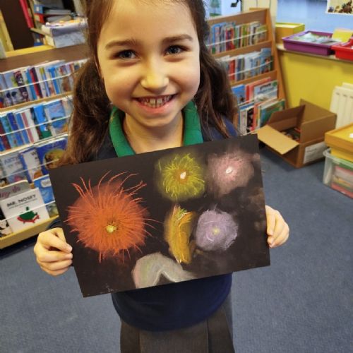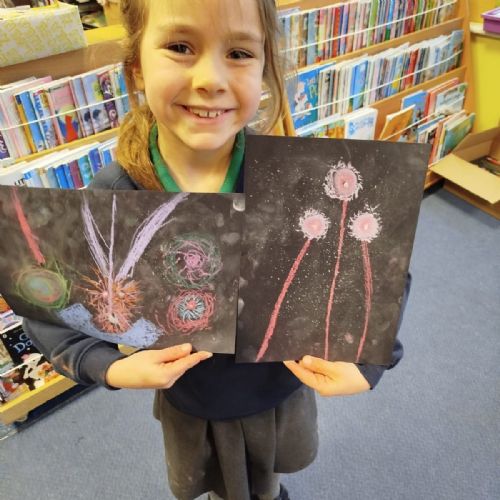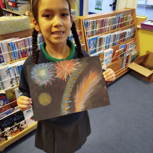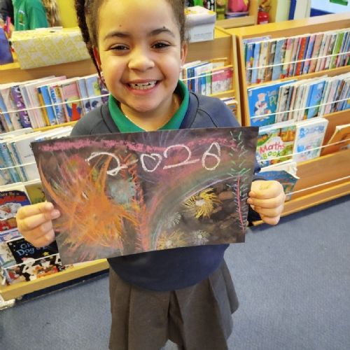 Firework chalk pastel pictures to celebrate the new year