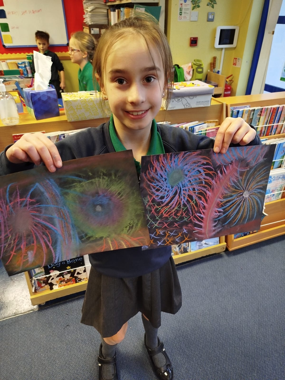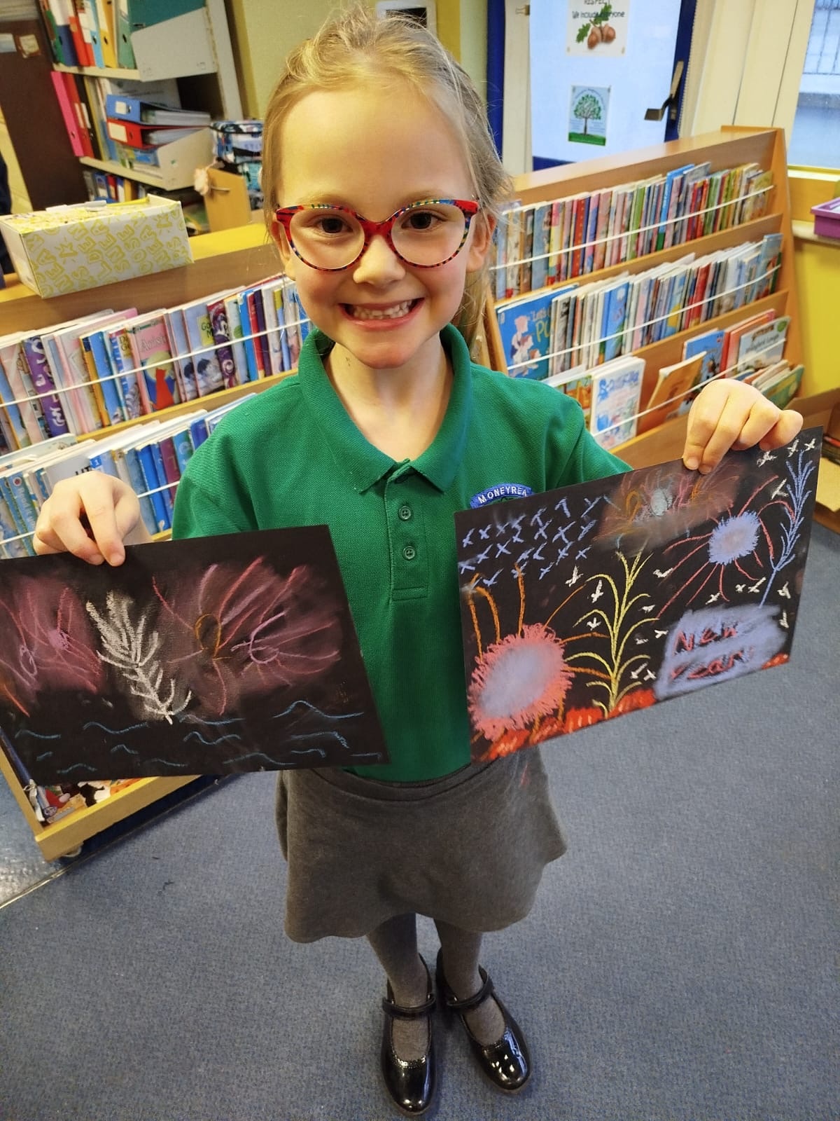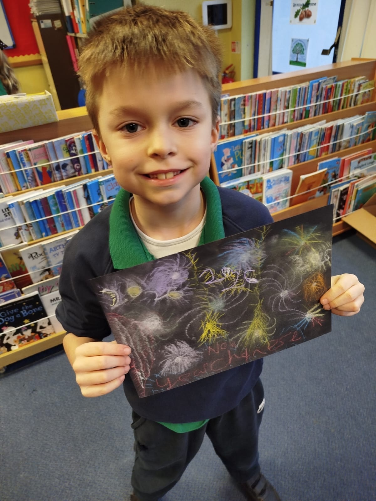 Firework chalk pastel pictures to celebrate the new year