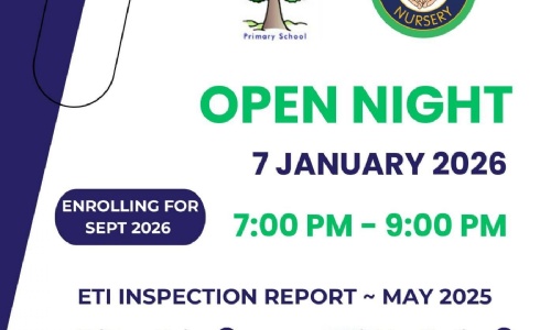 Moneyrea Primary School and Nursery Unit will hold their Open Night on Wednesday 7th January 2026 from 7.00pm to 9.00pm